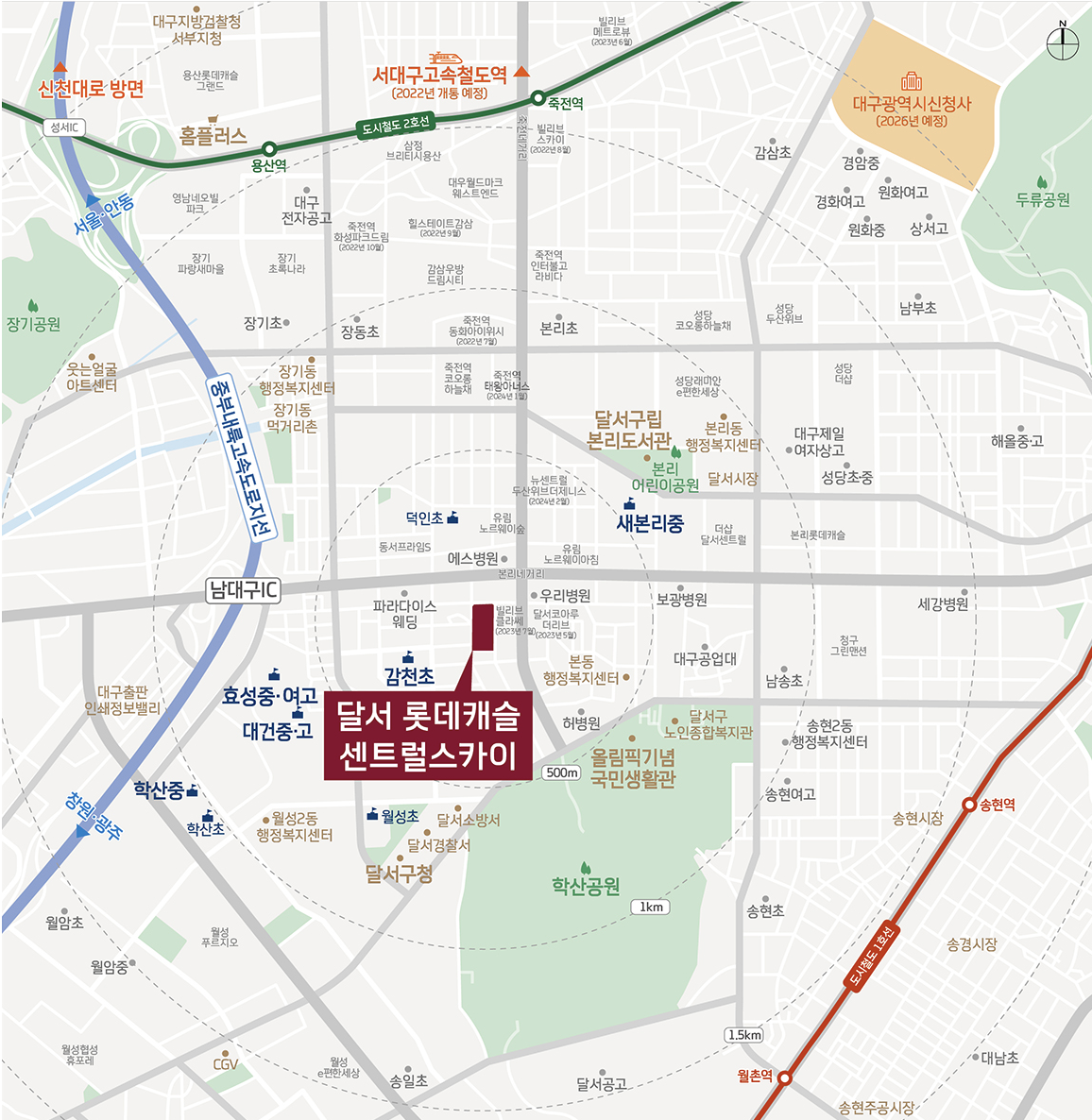 남대구IC, 달구벌대로, 와룡로 등 광역교통망과